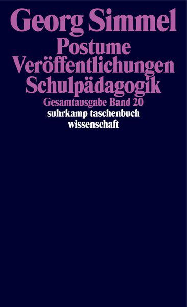 Der vorliegende Band 20 der Georg Simmel – Gesamtausgabe versammelt die nach dem Tode Georg Simmels veröffentlichten Schriften, deren Druck er nicht mehr veranlaßt hatte, Unveröffentlichtes und die „Schulpädagogik“. (...) Die Zusammenstellung des Bandes verzichtet auf eine chronologische Reihung der Beiträge, da nur von wenigen belegbar ist, wann Simmel den Text erstellt hat. Vielmehr liegt der leitende Gedanke für die Gliederung bei der Autorengerechtigkeit der Texte, es geht also darum, in welchem Maße die Herausgeber in den jeweiligen Text eingegriffen haben, sodann, in welcher Distanz die wiedergegebenen Texte zu dem von Simmel ursprünglich geschriebenen Manuskript stehen, und schließlich, in welchem Maße die Beiträge abgeschlossen und vollendet sind. (aus: Editorischer Bericht, S. 481 f.)