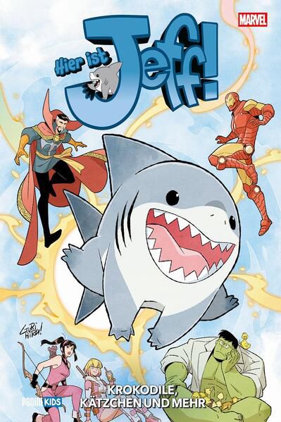 Wir präsentieren Jeff ... den allseits beliebten, unschuldigen, genialen und niedlichen Landhai! Wieder einmal erlebt der Marvel Rivals-Star allerhand lustige und kuriose Abenteuer – und das in bester Gesellschaft! Die Reise führt ihn dieses Mal mit seinen Tierfreunden Chewie, Cosmo und Lockjaw sogar ins Weltall?! Neben den üblichen Gastauftritten der X-Men, Avengers, Spider-Man und anderen Helden, erwarten euch dieses Mal auch Storys mit Alligator-Loki und ganz vielen Kätzchen. Inszeniert von Kelly Thompson (Captain Marvel), Gurihiru (Spider-Man & Venom: Geballte Ladung), Gustavo Duarte (Bizarro), Jason Loo (Spider-Boy), Alyssa Wong (Deadpool) und anderen.